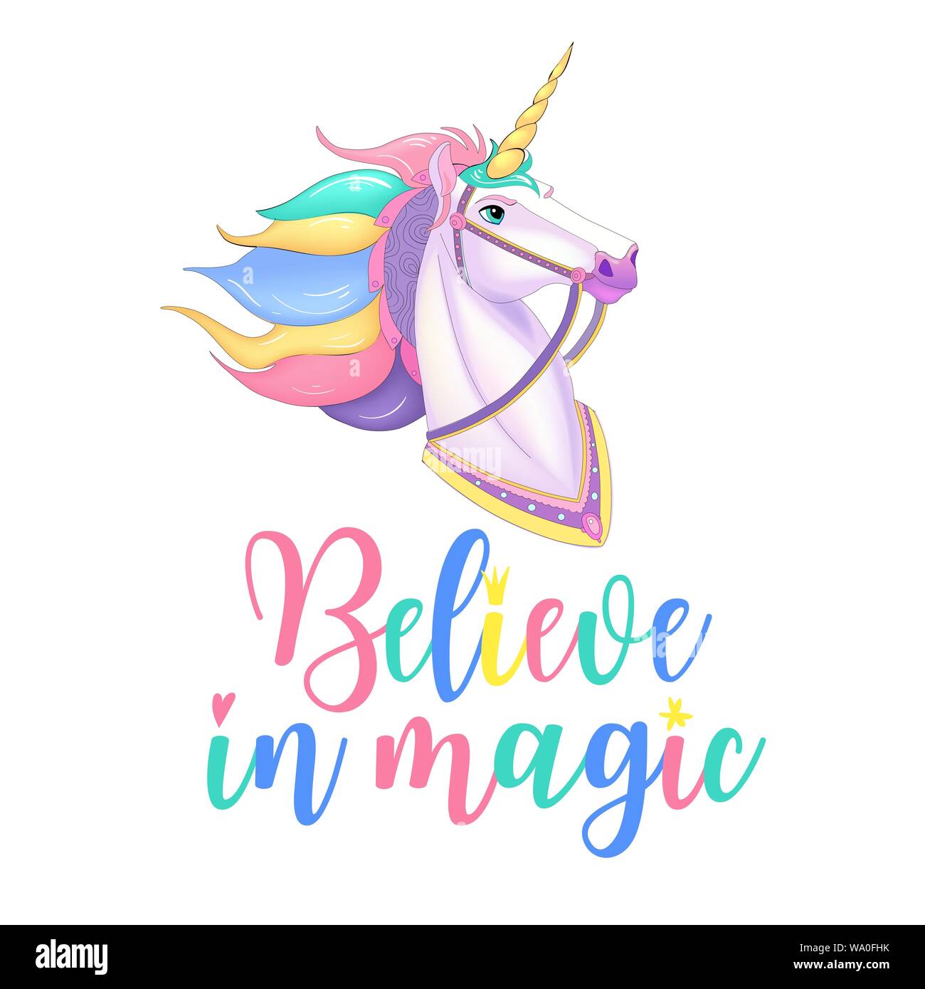 Cute Unicorn Baby Vector Illustration Magic Rainbow Fantasy Fairy