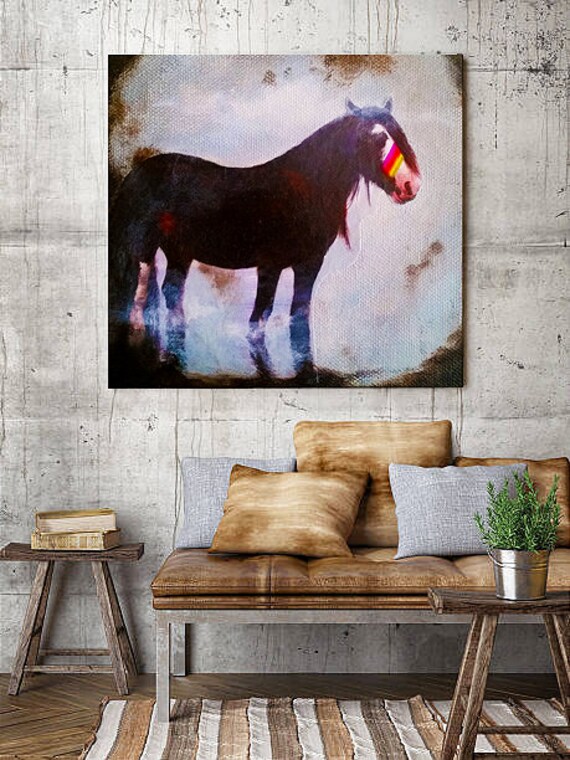 Horse Art Canvas Art Print Blue Rainbow Canvas Horse Etsy