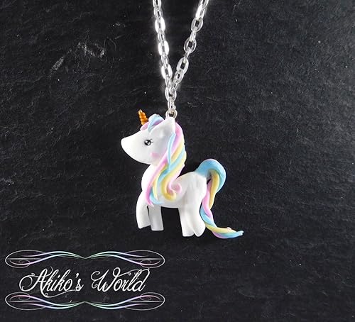 Kawaii Pastel Rainbow Unicorn Necklace Pendant Hand Made Out Of