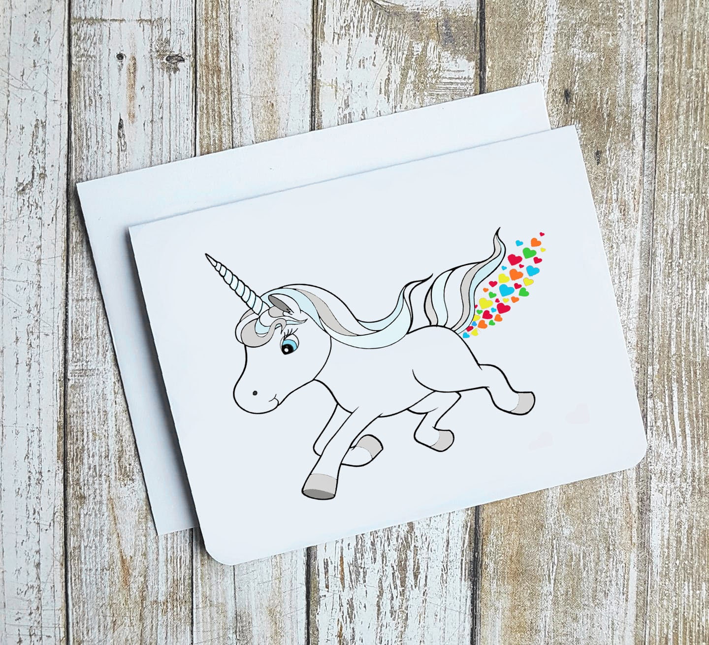 Rainbow Heart Farting Unicorn Greeting Card Birthday Anyday