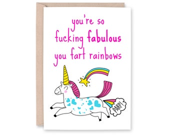 Funny Farting Unicorn Rainbows Birthday Card For Friend Etsy