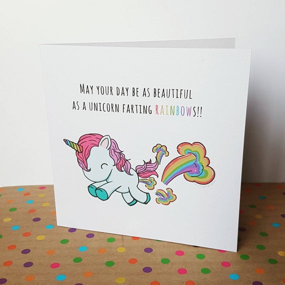 Cute Unicorn Card Rude Birthday Card Unicorn Farting Etsy