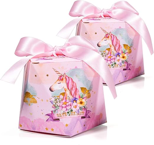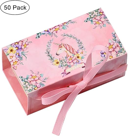 Amazon Com 24pcs Unicorn Favor Boxes Pink Ribbon Party Candy