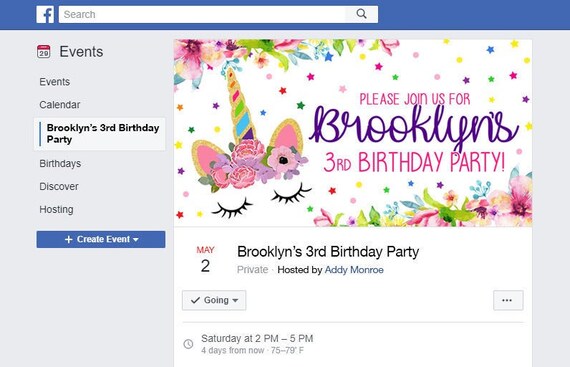 Facebook Custom Event Cover Timeline Cover Unicorn Birthday Etsy