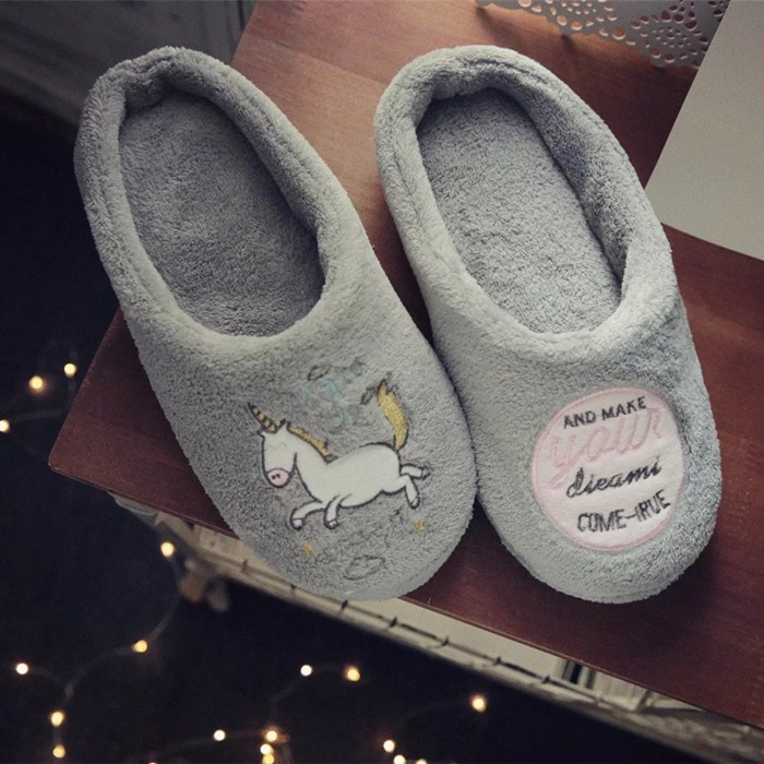 Cute Cartoon Unicorn Half Pack Warm Slippers Ab Feet Couple Home Slippers Temper Shopee Indonesia