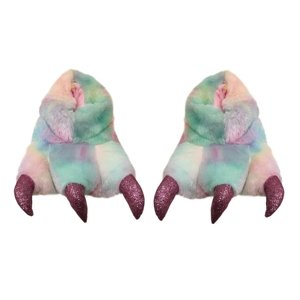 Isupportposture Rainbow Monster Feet Slippers Fur With Glitter Claw Unicorn Cute Plush Animal Slippers For Girls Ladies Free Eyeglass Pouch M Walmart Com