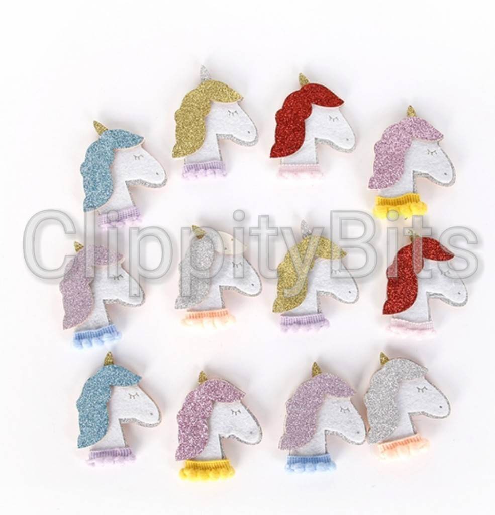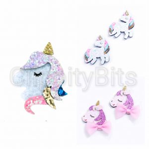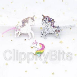 60mmx50mm Felt Backed Glitter Fabric Unicorn Feltie Clippitybits