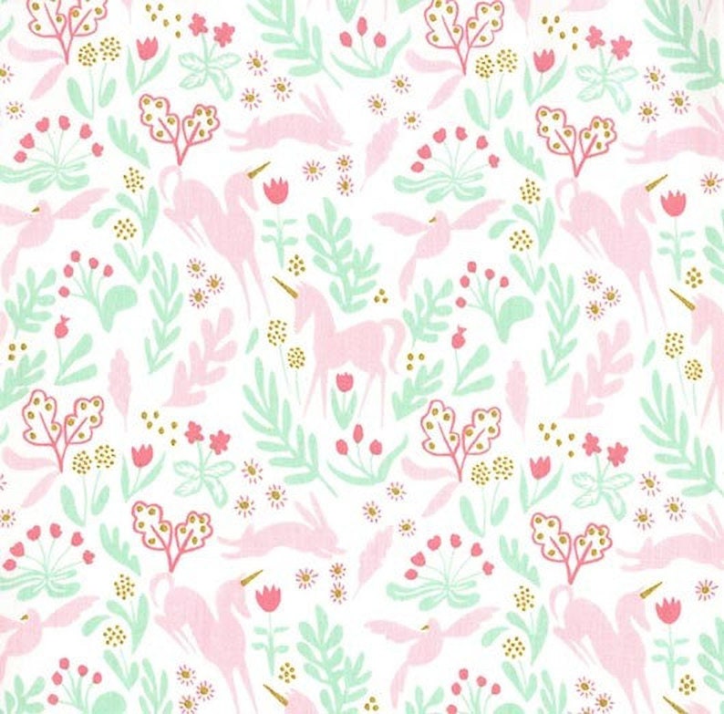 Pink Purple And Turquoise Unicorns Floral Fabric Felt Sheet Etsy