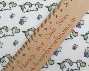 Rainbow Unicorn Lilac Premium Felt Backed Fabric Honey Bee