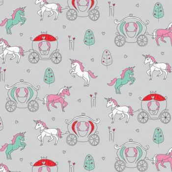 Lewis And Irene Fairy Lights Unicorn Forest Grey Felt Backed Fabric