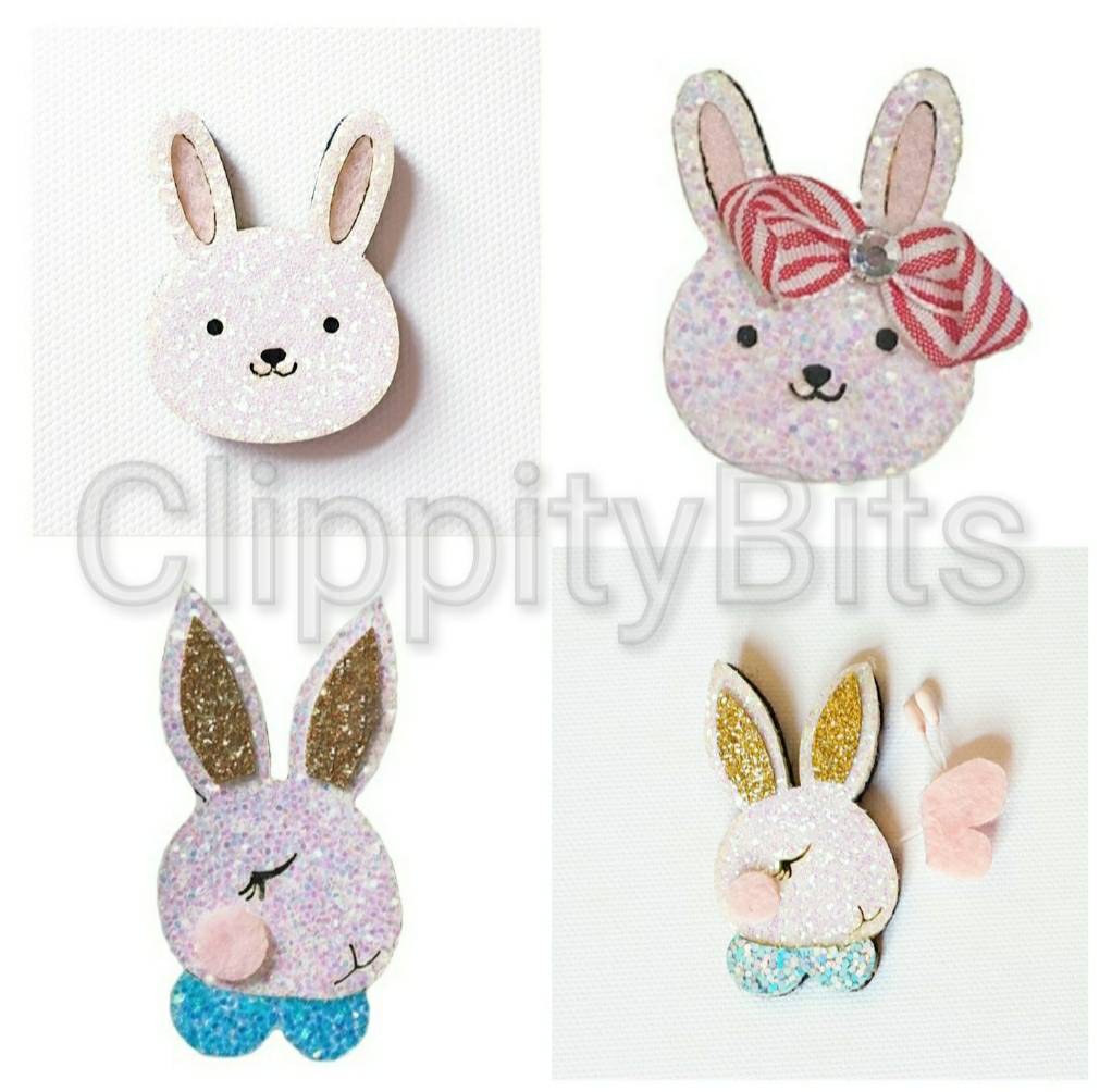 Bunny Rabbit Felt Backed Appliques Glitter Fabric Easter Feltie