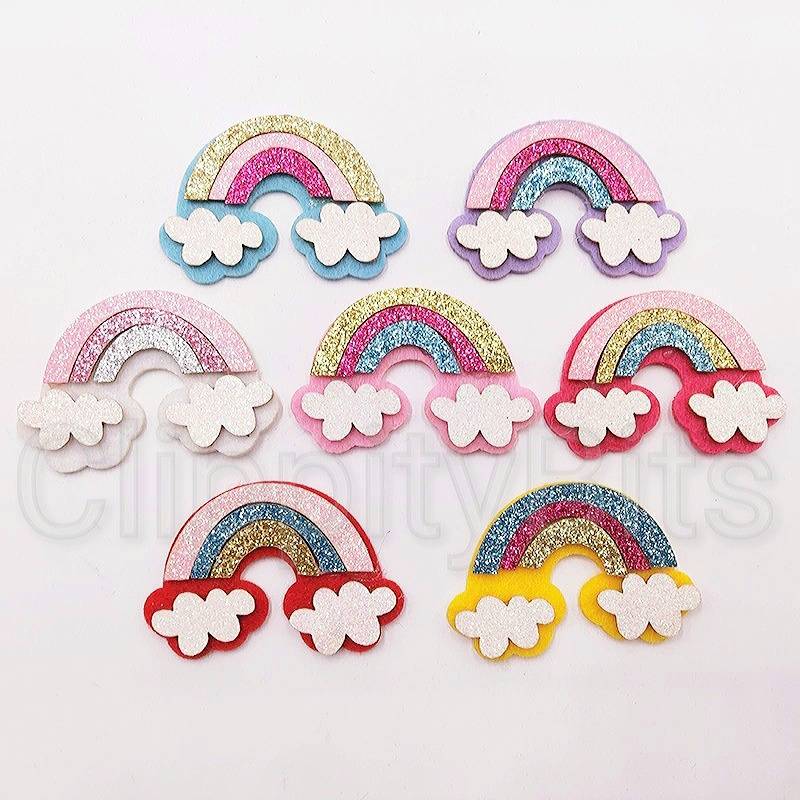 53x35mm Felt Backed Appliques Glitter Fabric Rainbow Felties