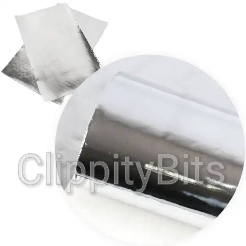 34cmx20cm Silver Shiny Mirror Leatherette Felt Backed Fabric