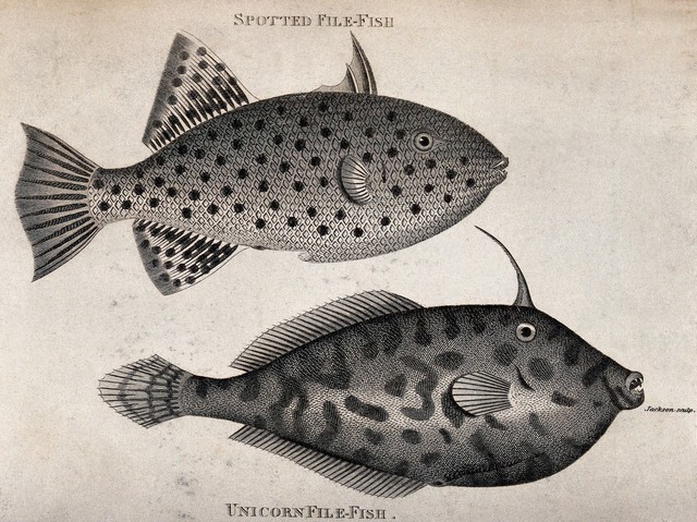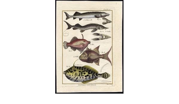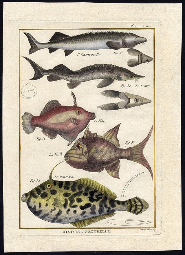 Antique Fish Print Beluga Sterlet Triggerfish Unicorn Filefish