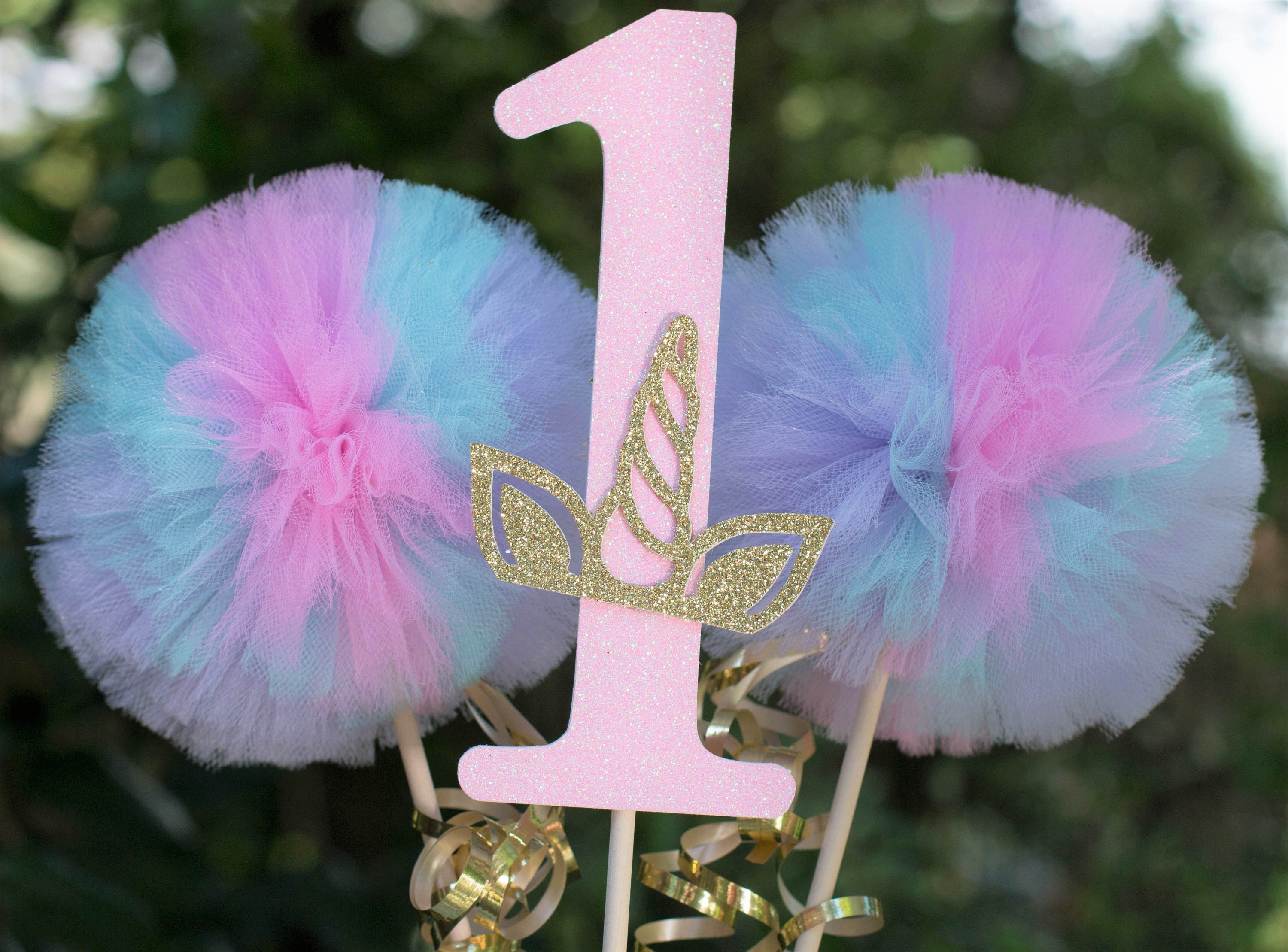 Unicorn First Birthday Decorations Centerpiece With Pom Pom Etsy