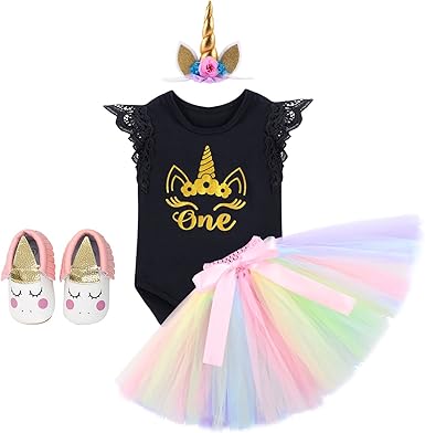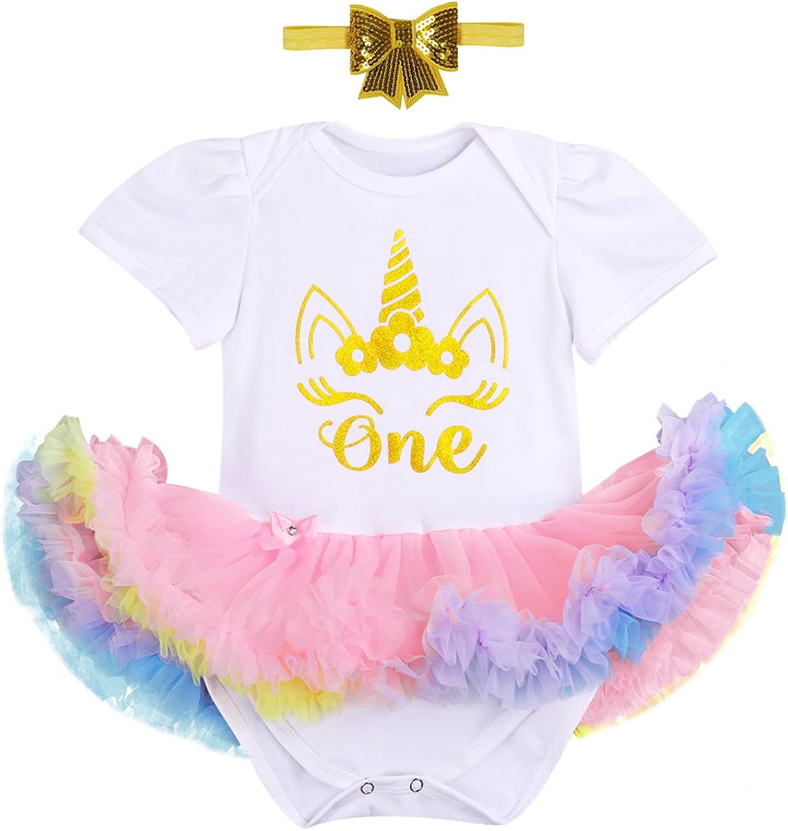 Amazon Com Baby Girls 1st Birthday Unicorn Outfits Set Rainbow