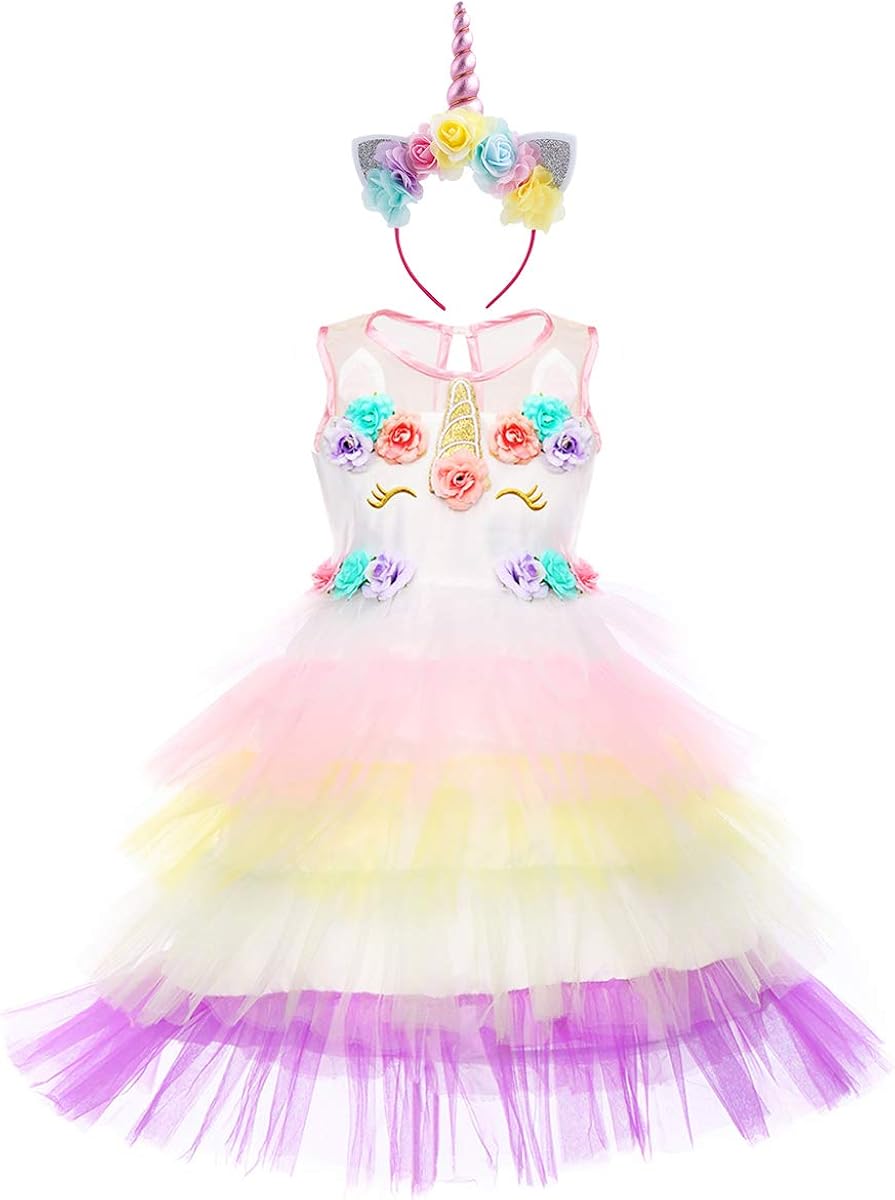 Amazon Com Girls Kids Flower Unicorn Birthday Outfits Cosplay