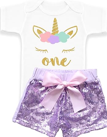 Amazon Com Unicorn 1st Birthday Baby Girl Sequin Shorts First