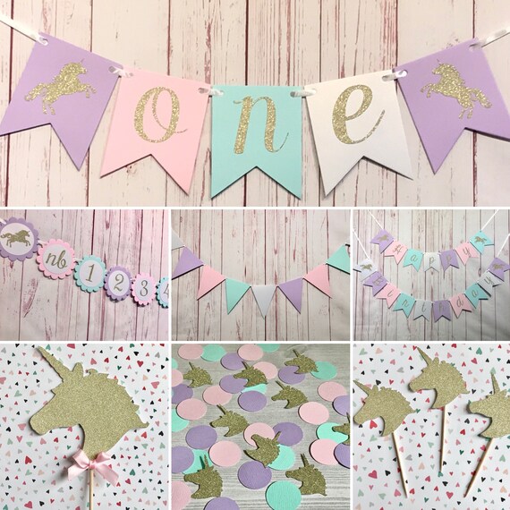 Unicorn First Birthday Unicorn High Chair Banner Unicorn Etsy