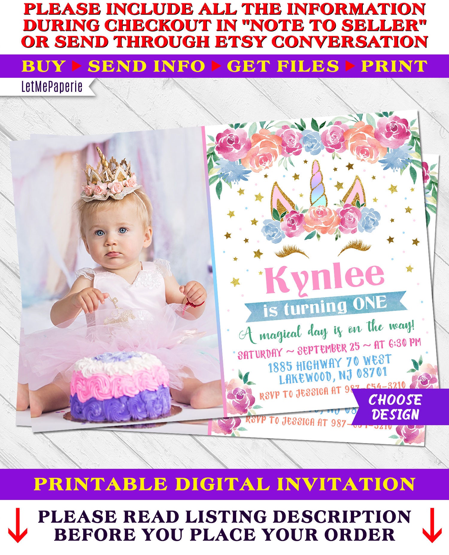 Unicorn First Birthday Invitation Unicorn Invitation Photo Etsy
