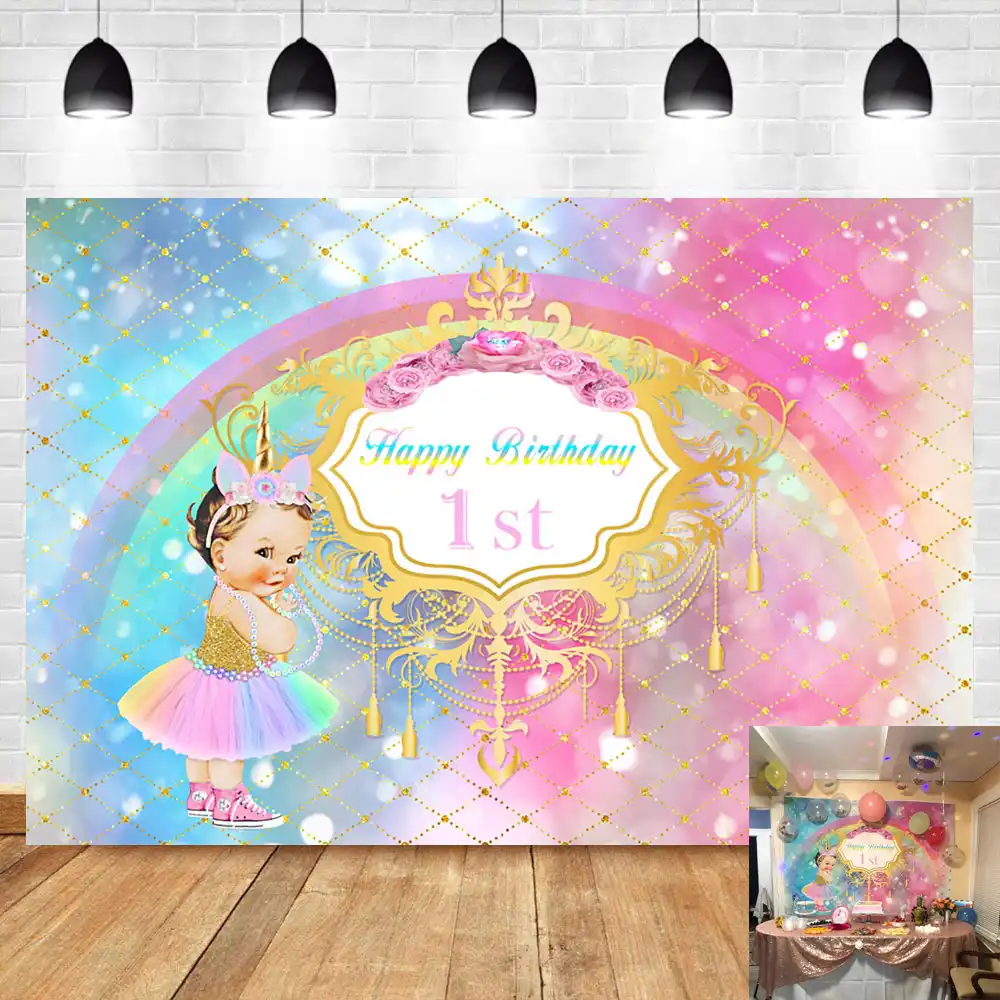 Amazon Com Csfoto 7x5ft Happy 1st Birthday Backdrop Unicorn