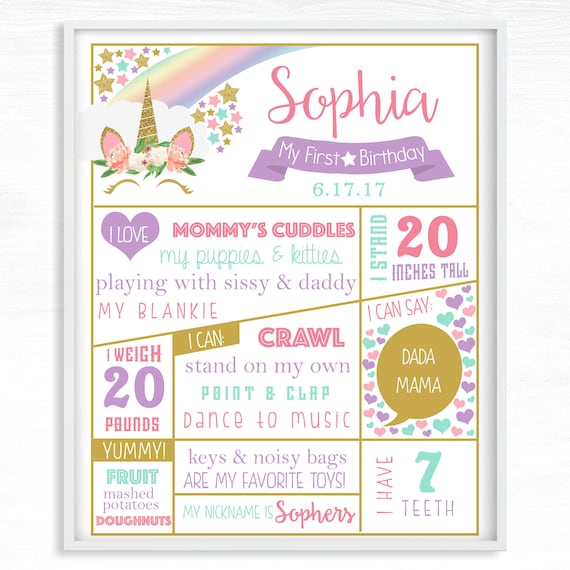 Unicorn Birthday Board First Birthday Board Unicorn First Etsy