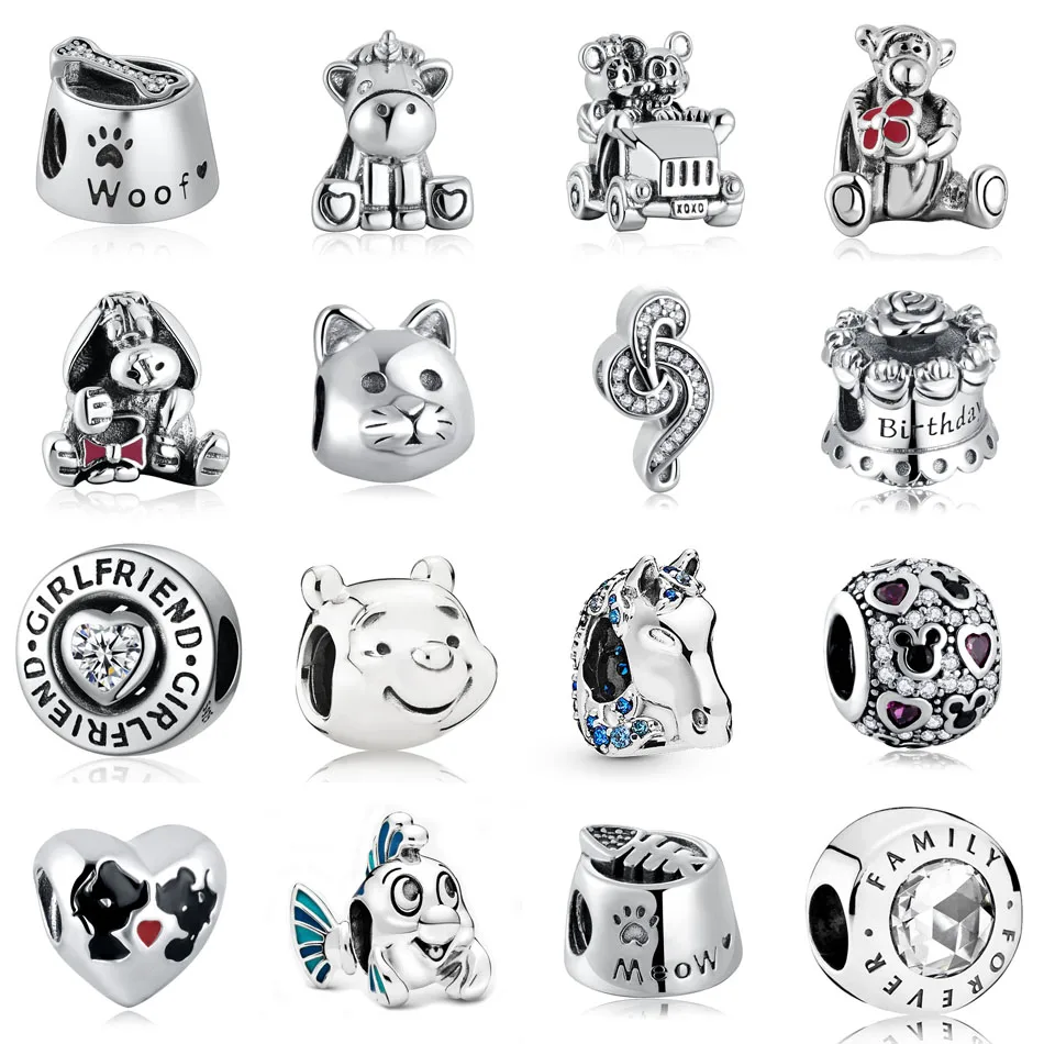 S925 Silver Charm Dog Bowl Woof Unicorn Mouse Tiger Donkey Cat