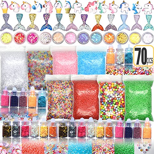 Hulluter 70pcs Slime Add Ins Kit Floam Beads Fish Bowl Mreaind