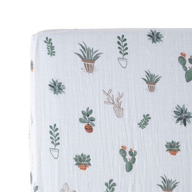 Little Unicorn Cotton Muslin Fitted Crib Sheet Tropical Leaf