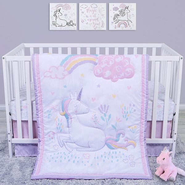 Magic Unicorn Pink Purple Rainbow 3 Piece Baby Crib Bedding Set