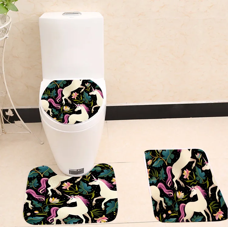 3pcs Unicorn Digital Printing Toilet Sets Cover Flannel Fabric