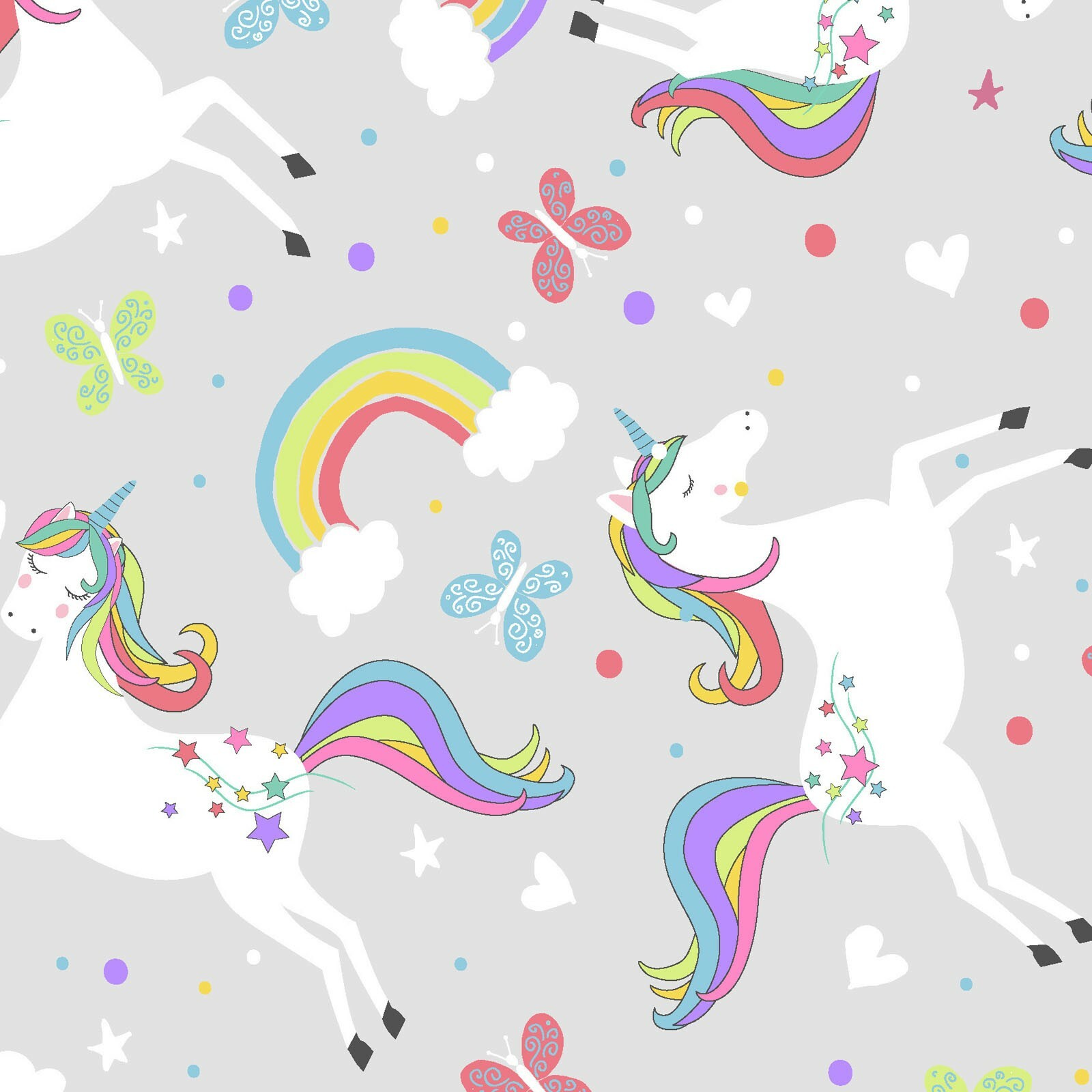 Nutex Fabric Pretty Please Unicorns Grey 100 Cotton