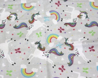 Fabric Unicorn And Rainbows On Grey Flannel By The 1 4 Yard Box C