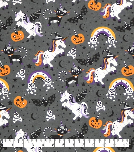 Flannel Fabric Magic Unicorns Gray By The Yard 100 Etsy