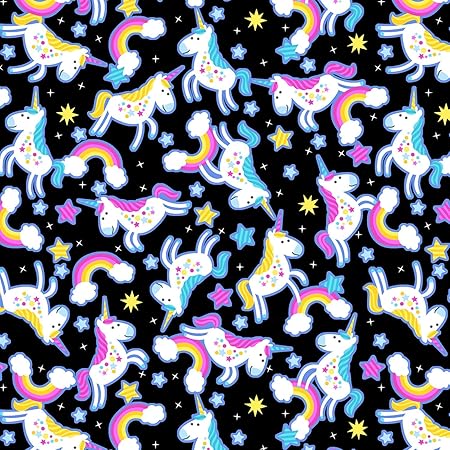 Windham Unicorn Rainbow Flannel Fabric Unicorns Rainbows Black