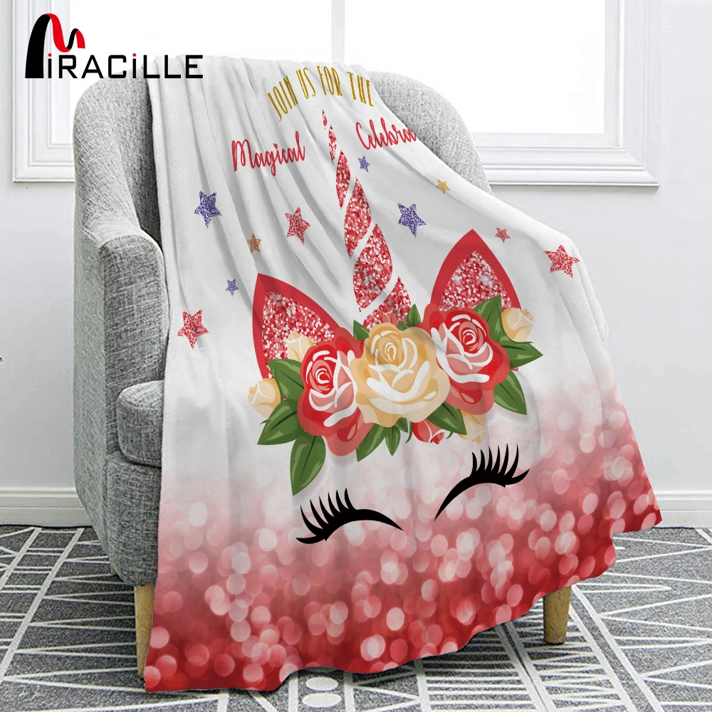 Miracille Unicorn Flannel Blanket Printed Cartoon Cute Fleece