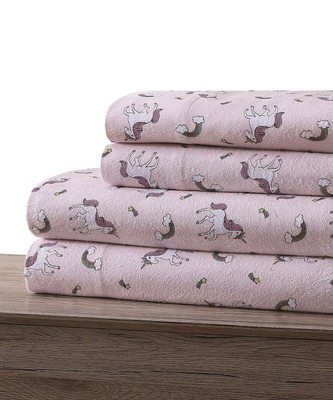 Dakota Kids Pastel Pink Dream Flannel Unicorn Sheets For Girls In