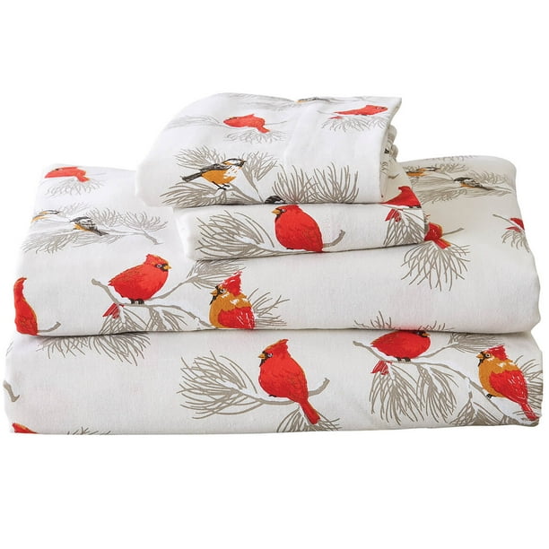 Oakridge Cardinal And Chickadee Flannel Sheet Set Turkish Cotton Flannel Twin Walmart Com Walmart Com