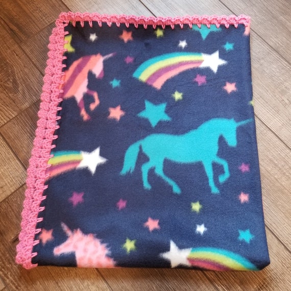 Unicorn Fleece Blanket With Hand Crocheted Border Etsy