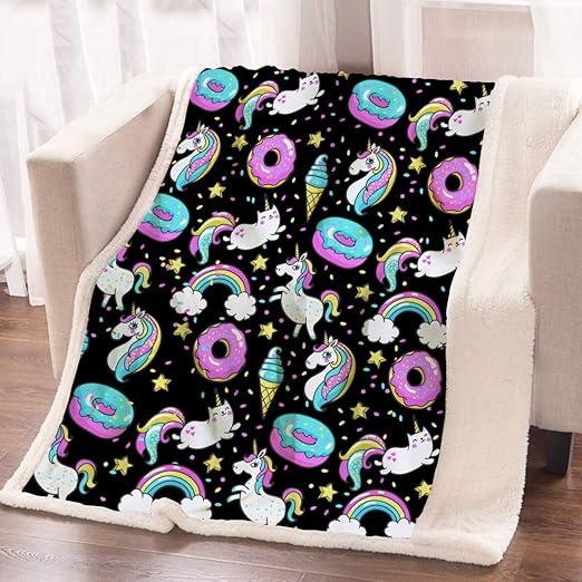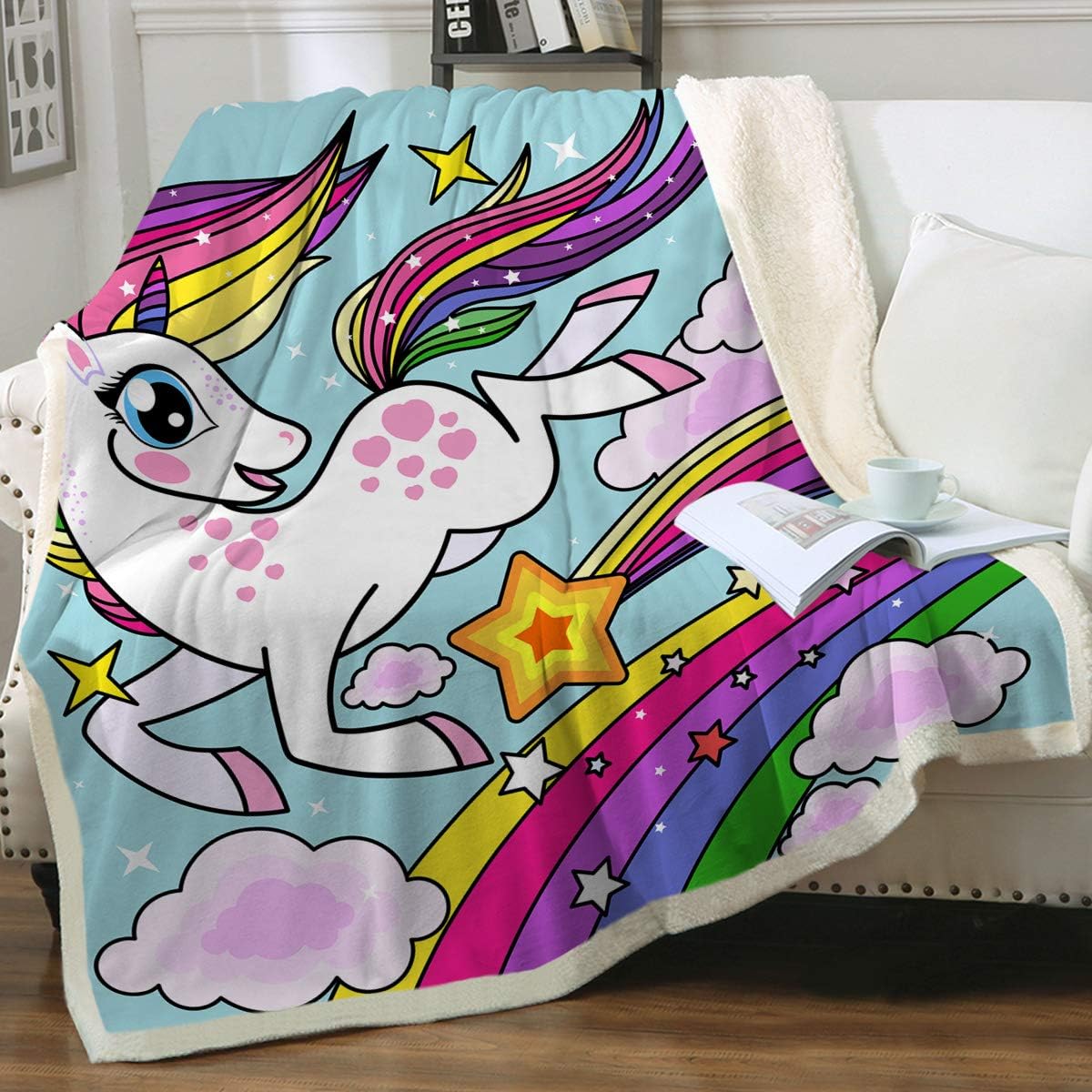 Blessliving Cute Unicorn Sherpa Fleece Blanket Magic Kids
