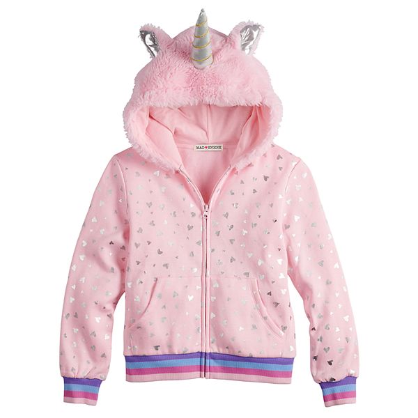 Girls 7 16 Mad Engine Unicorn Zip Front Fleece Hoodie