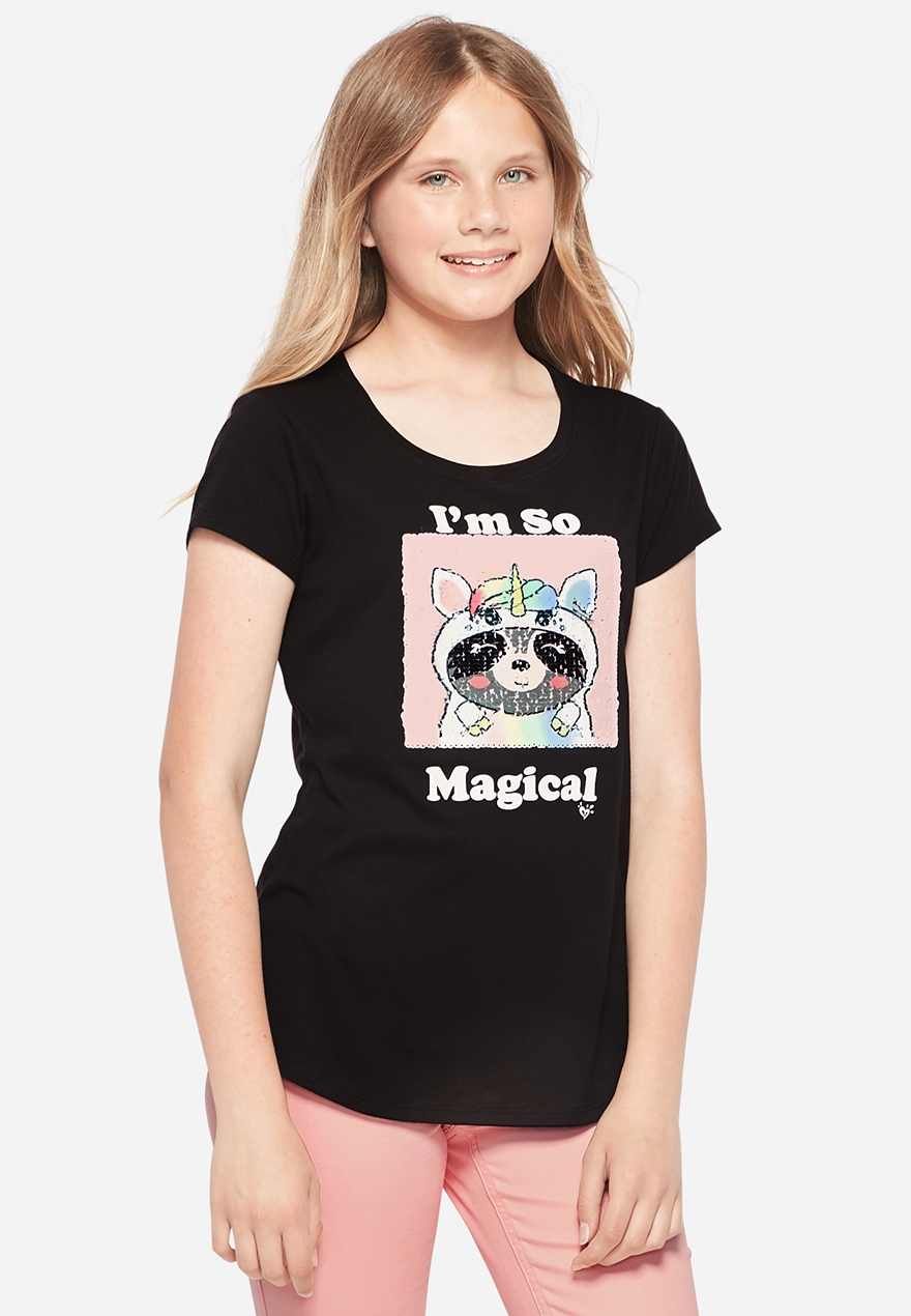 Raccoon Unicorn Flip Sequin Girls Grahic Tee Justice