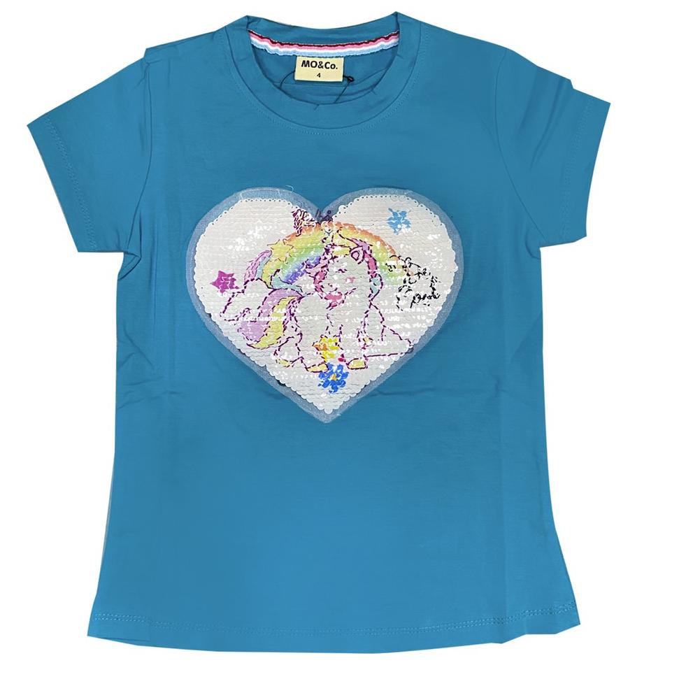 Girls Short Sleeve Flip Sequin Unicorn T Shirt Cat Jack Aqua