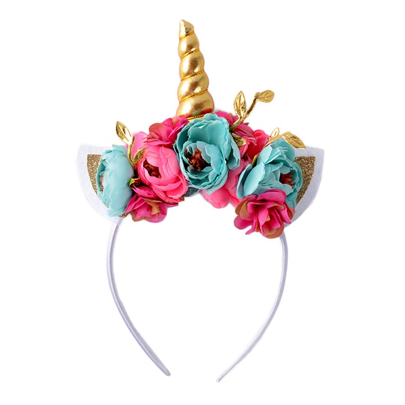 Hair Hoop Gold Unicorn Horn Ear Flower Headband Birthday Party