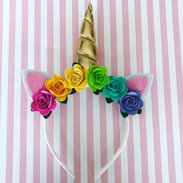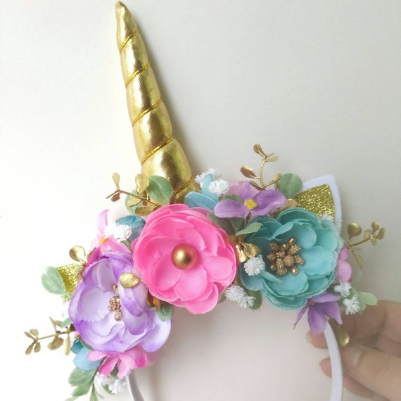 Unicorn Flowers Headband Unicorn Headband Gold Unicorn Etsy
