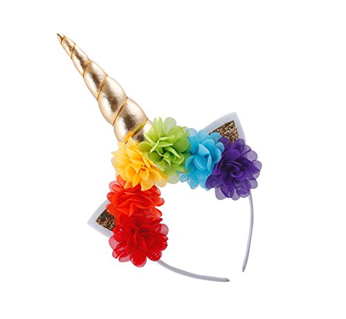Amazon Com Kids Girls Unicorn Headband Gold Horn Ears Flower