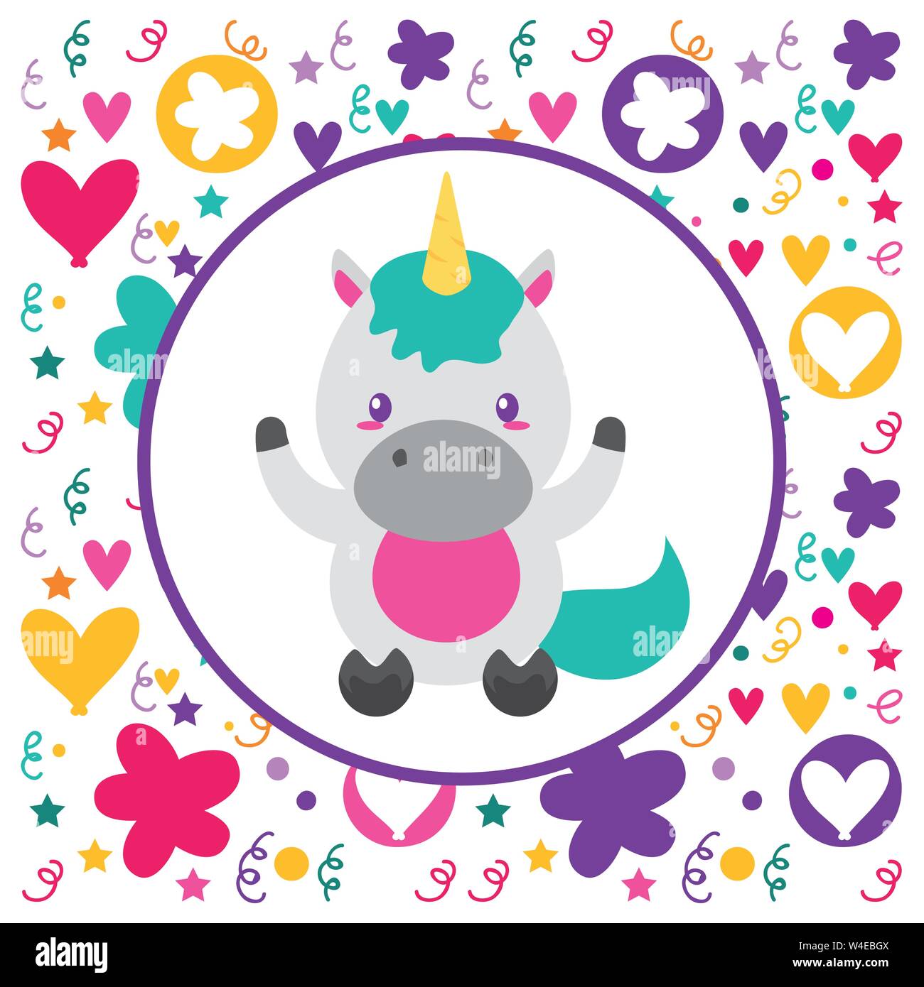 Cute Baby Unicorn Flowers Heart Background Stock Vector Image