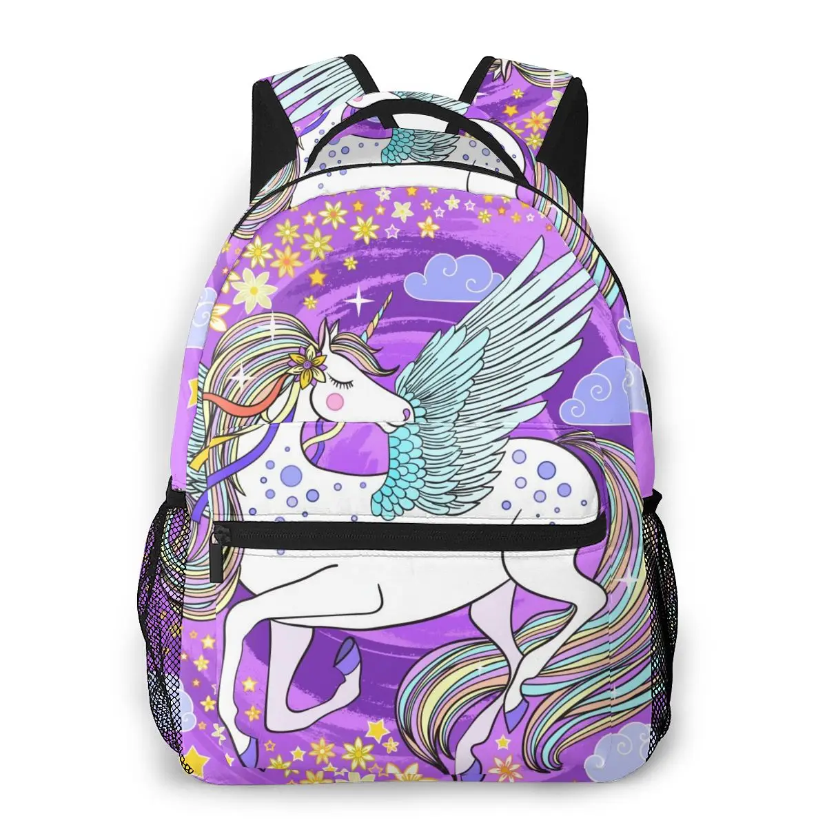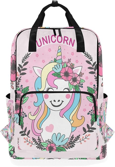 1 Pc Cartoon Unicorn Printed Backpack Girls Lovely Unicorn Flower