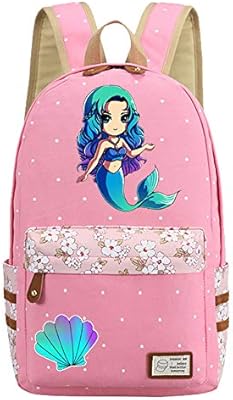 Mermaid Backpack Flowers Canvas Bag Girls School Cartoon Mermaid