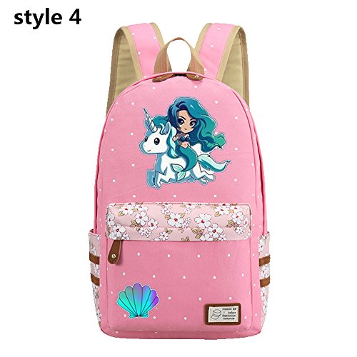 Mermaid Unicorn Flowers Canvas Princess Women Backpack Shoulder